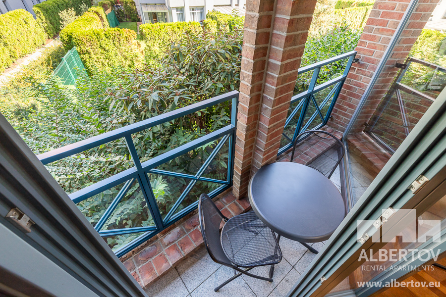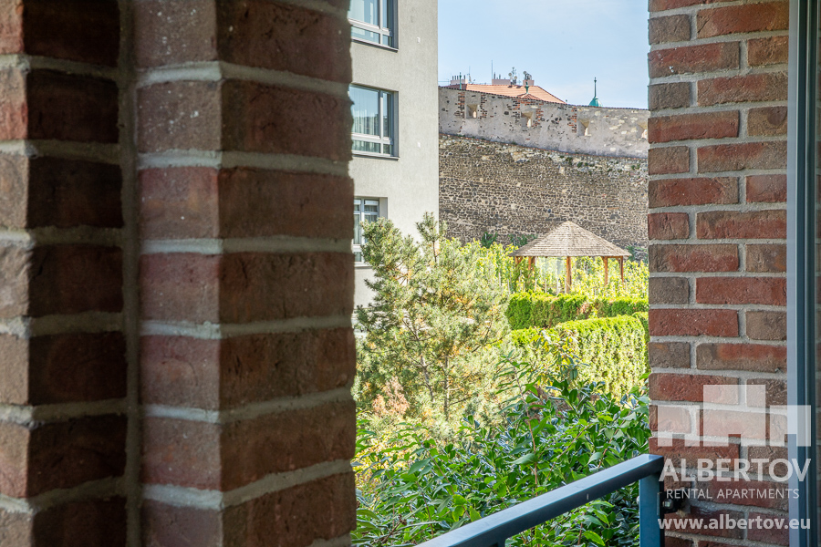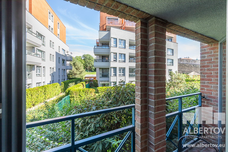 Apartmán se nachází ve 2. patře budovy uzavřeného rezidenčního komplexu Albertov Rental Apartments, v klidné části Prahy pod Vyšehradem, v těsné blízkosti centra Prahy. 8 minut tramvají na Václavské náměstí. Zastávka MHD přímo před rezidenčním areálem.