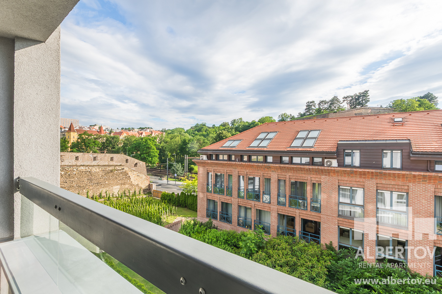 Tento apartmán se nachází ve 4. patře budovy uzavřeného rezidenčního komplexu šesti nájemních budov, v klidné části Prahy pod Vyšehradem, 8 minut tramvají od Václavského náměstí. Tramvajová zastávka Albertov se nachází přímo před areálem Albertov Rental Apartments.
