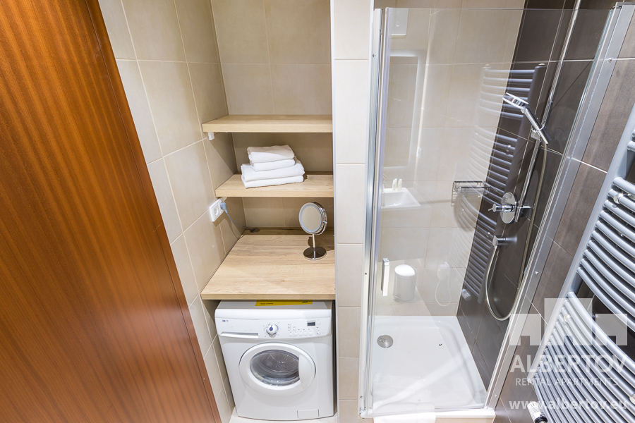 Velmi praktická je také sklopná postel, kterou je možno během dne zaklopit, a tím zvětšit prostor apartmánu. Samozřejmostí je kvalitní anatomická matrace, která zajistí Váš klidný spánek.